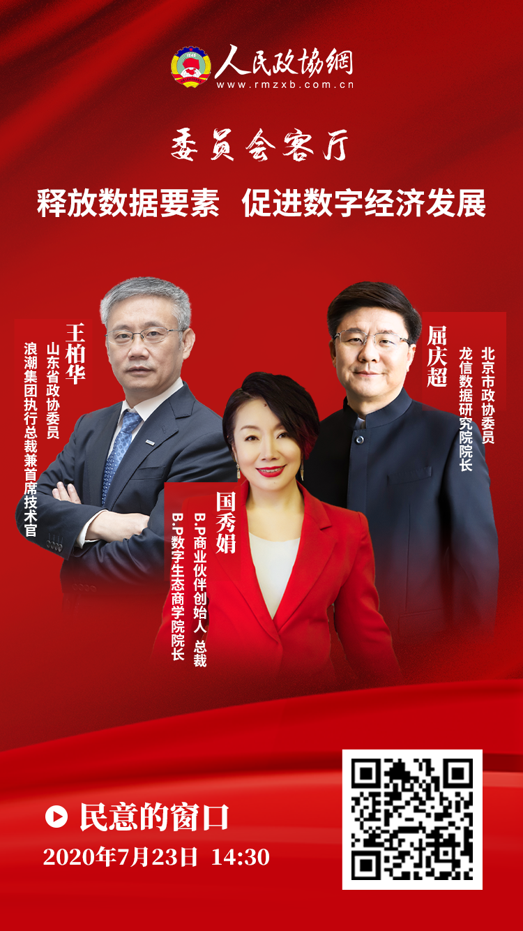 7月23日,由人民政協(xié)網(wǎng)主辦的“委員會(huì)客廳”系列訪談即將播出。本次訪談的主題為“釋放數(shù)據(jù)要素 促進(jìn)數(shù)字經(jīng)濟(jì)發(fā)展”。B.P商業(yè)伙伴創(chuàng)始人兼總裁、B.P數(shù)字生態(tài)商學(xué)院院長國秀娟受邀擔(dān)任嘉賓主持,和人民政協(xié)網(wǎng)大數(shù)據(jù)部主任隋國龍一起與北京市政協(xié)委員、龍信數(shù)據(jù)研究院院長屈慶超,山東省政協(xié)委員、浪潮集團(tuán)執(zhí)行總裁兼首席技術(shù)官王柏華等兩位嘉賓,圍繞“釋放數(shù)據(jù)要素 促進(jìn)數(shù)字經(jīng)濟(jì)發(fā)展”展開深度討論。