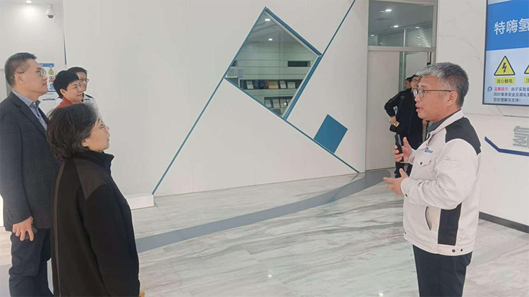 特嗨氫能檢測(cè)副總經(jīng)理馬強(qiáng)(右)向調(diào)研團(tuán)隊(duì)介紹公司發(fā)展情況