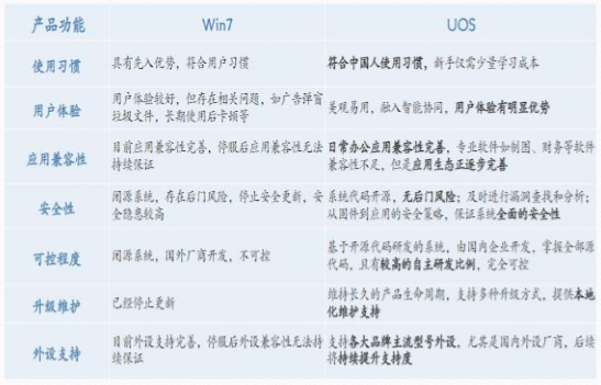 表一:UOS系統(tǒng)在日常辦公領(lǐng)域已具備替換Win7系統(tǒng)的能力