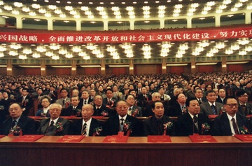 秦裕琨院士(前排中)參加2000年度國家科技獎勵大會