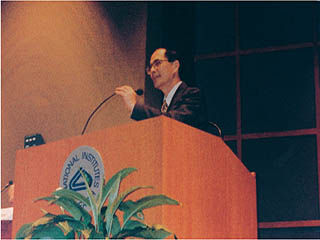 1997年11月,美國(guó)國(guó)立衛(wèi)生研究院(NIH)召開有關(guān)針刺療法的聽證會(huì),對(duì)針刺療法的科學(xué)性和在美國(guó)應(yīng)用的可行性進(jìn)行廣泛聽證。作為直接接受美國(guó)衛(wèi)生部科研基金資助的科學(xué)家,韓濟(jì)生在大會(huì)上做了題為“針刺鎮(zhèn)痛的阿片肽機(jī)理”的報(bào)告,對(duì)“針灸療法具有化學(xué)物質(zhì)基礎(chǔ)”的理論進(jìn)行了科學(xué)闡述。這次會(huì)議,在美國(guó)歷史上第一次正式肯定了起源于中國(guó)的針刺療法對(duì)某些疾病確實(shí)有效,而且副作用極小,可以應(yīng)用。從此,美國(guó)的醫(yī)療保險(xiǎn)公司開始為這種治療方式擔(dān)保。”韓濟(jì)生如是說。這次會(huì)議所得出的結(jié)論,對(duì)于中國(guó)針刺療法在全世界的推廣應(yīng)用起著劃時(shí)代的作用。