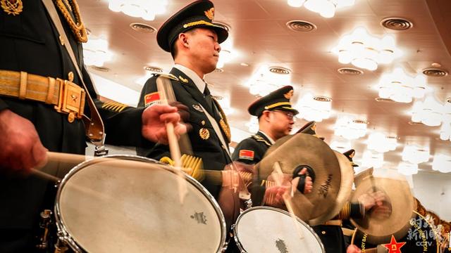 △開幕會上,軍樂團演奏國歌。(總臺央視記者王威拍攝)