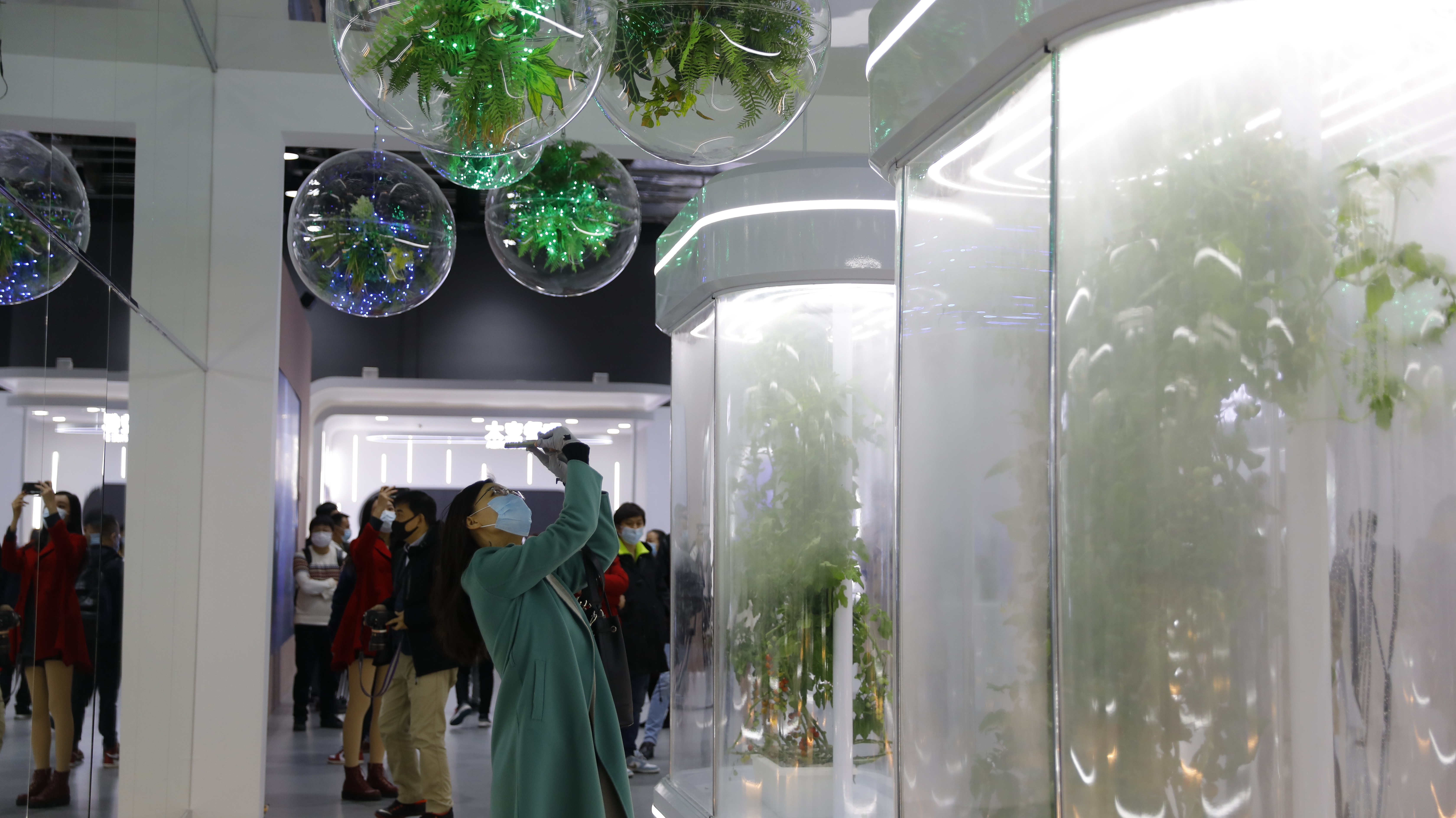 在“太空家園”展區(qū),郁郁蔥蔥的太空植物正在茁壯生長(zhǎng),紅綠相間的一串串番茄,惹人垂涎。許多觀(guān)眾在這里拍照打卡,直呼簡(jiǎn)直太夢(mèng)幻了。