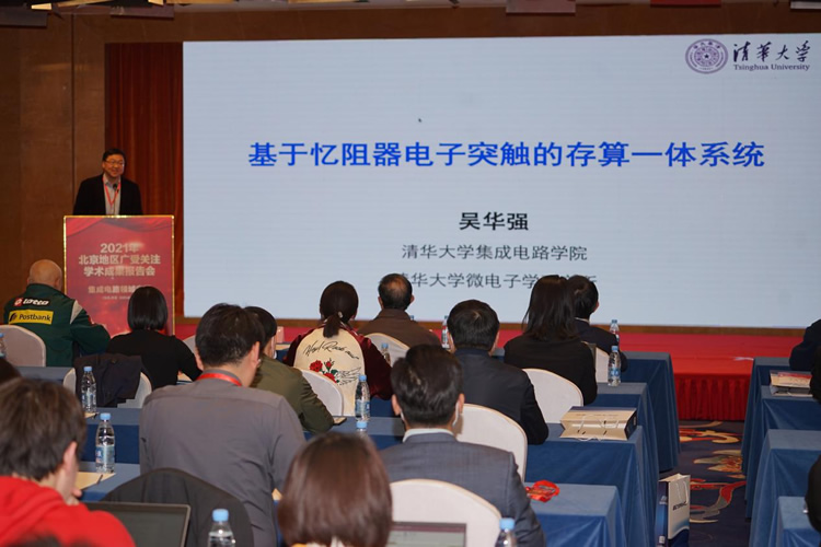 本場報告會聚焦集成電路領(lǐng)域在國內(nèi)外期刊上發(fā)表的熱點(diǎn)、前沿、有重大科研進(jìn)展的廣受關(guān)注學(xué)術(shù)成果,并邀請學(xué)術(shù)成果入選作者清華大學(xué)集成電路學(xué)院院長吳華強(qiáng)、清華大學(xué)類腦計算研究中心主任施路平、北京大學(xué)教授周治平、中國科學(xué)院半導(dǎo)體研究所半導(dǎo)體超晶格國家重點(diǎn)實驗室研究員劉力源分別作題為《基于憶阻器電子突觸的存算一體系統(tǒng)》《硅基光電子芯片與片上光源》《面向人工通用智能的天機(jī)芯片架構(gòu)》《基于動態(tài)放大器的Delta-Sigma調(diào)制器及其在太赫茲成像中的應(yīng)用》的學(xué)術(shù)報告?,F(xiàn)場氣氛熱烈,報告人、交流專家、現(xiàn)場觀眾以及網(wǎng)絡(luò)觀眾之間,不時進(jìn)行交流研討、思想碰撞。