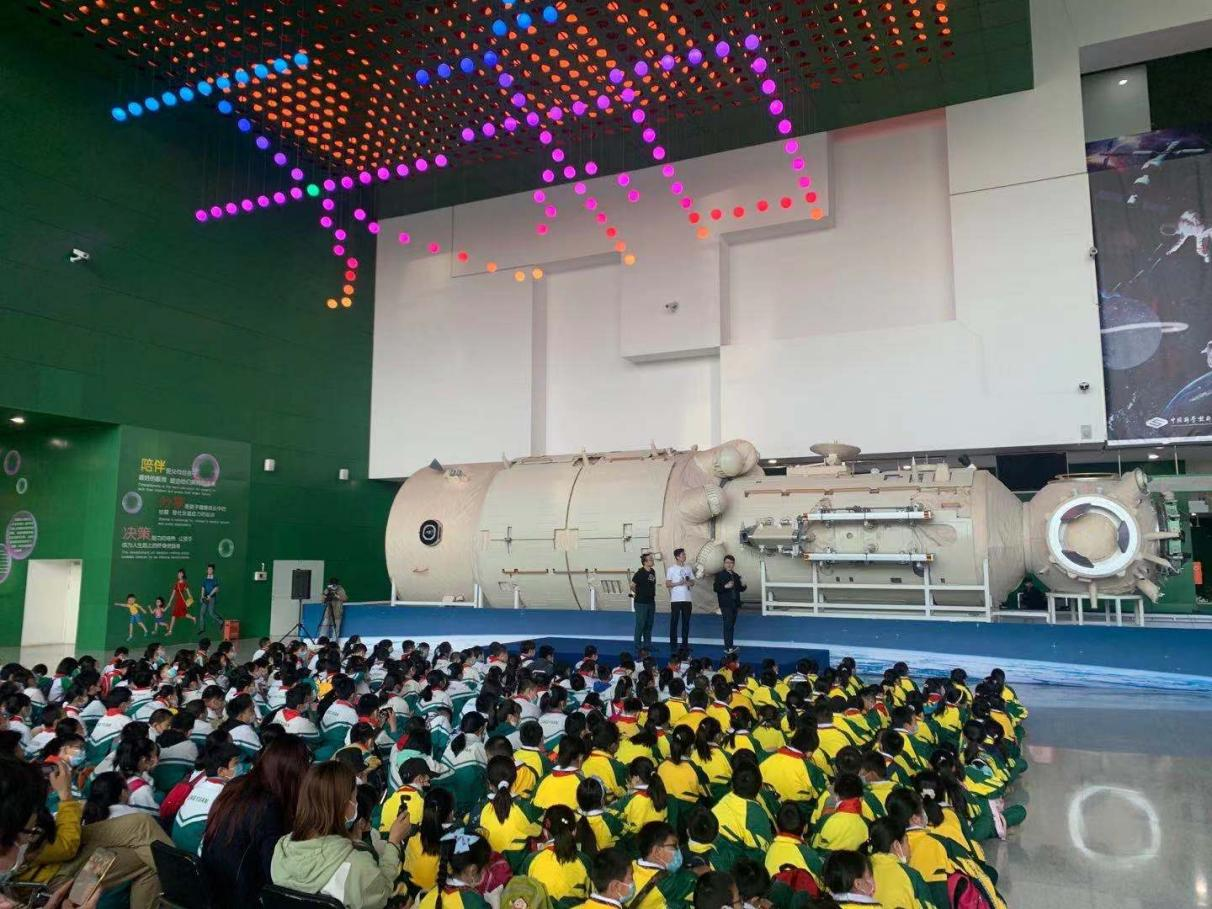 在活動(dòng)中,圍繞此次發(fā)射任務(wù),結(jié)合展廳內(nèi)1:1的“天和核心艙”結(jié)構(gòu)驗(yàn)證件實(shí)物,中國(guó)科技館科技輔導(dǎo)員、國(guó)家天文臺(tái)研究員鄭永春及北京航空航天大學(xué)宇航學(xué)院副教授張曉天為北京京源學(xué)校、首都師范大學(xué)附屬育新學(xué)校、北京一零一中礦大分校、北京醫(yī)科大學(xué)附屬小學(xué)共300余名師生講解了空間站的結(jié)構(gòu)和作用,并對(duì)我國(guó)載人航天工程未來(lái)的發(fā)展進(jìn)行了交流和探討。同時(shí),活動(dòng)還通過科學(xué)實(shí)驗(yàn)表演、與海南文昌直播連線的形式,向青少年普及航天科技知識(shí)、弘揚(yáng)中國(guó)航天精神,在青少年心中種下科學(xué)的種子。