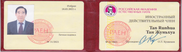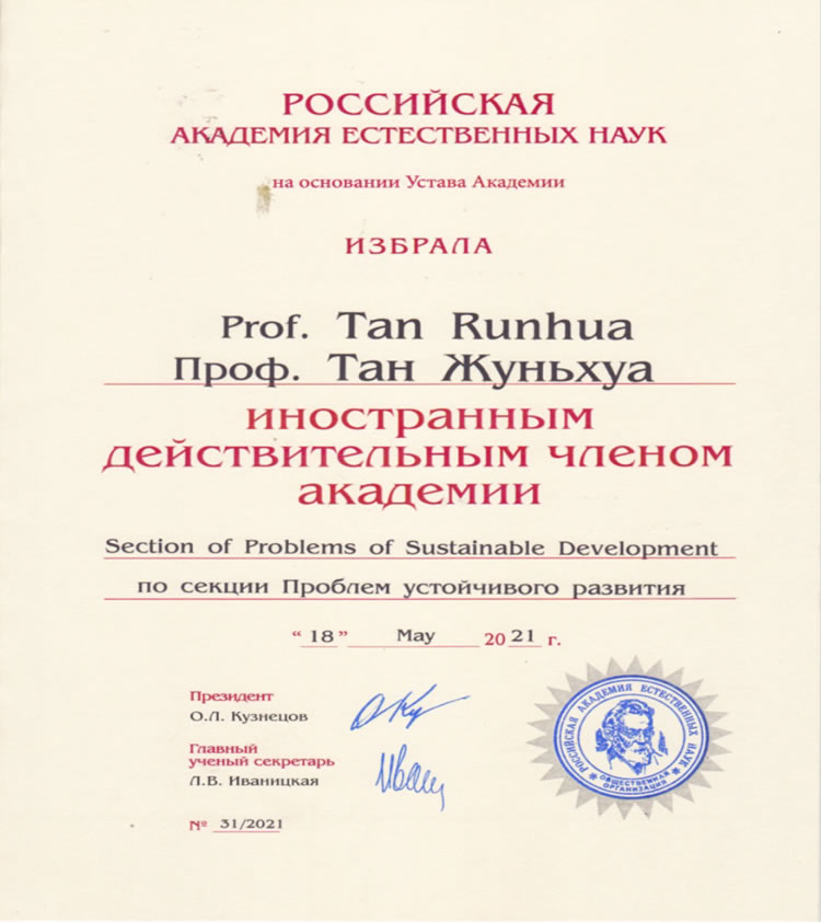 請接受我們真誠的祝賀,您被選舉為俄羅斯自然科學(xué)院外國有效成員(院士),2021年5月18日,№ 31/2021決議。