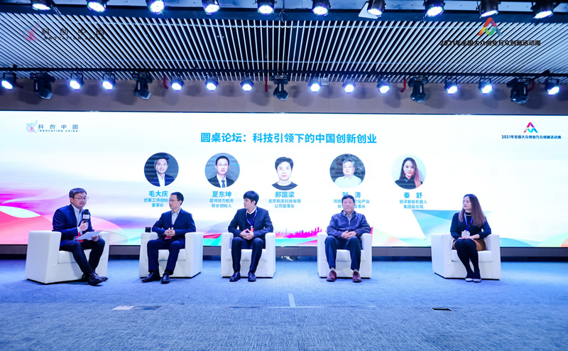 在圓桌論壇環(huán)節(jié),優(yōu)客工場創(chuàng)始人兼董事長毛大慶、星河動力航天聯(lián)合創(chuàng)始人夏東坤、北京斯高科技有限公司董事長郝國梁、河南根文創(chuàng)文化產(chǎn)業(yè)有限公司董事長劉濤及創(chuàng)澤智能機器人集團副總裁秦舒以“科技引領下的中國創(chuàng)新創(chuàng)業(yè)”為主題,圍繞在新一輪科技革命的深刻背景下,如何匯聚和激活創(chuàng)新要素等熱點話題,結(jié)合自身創(chuàng)新思考和經(jīng)驗,展開深入討論,并與與會代表進行互動交流。