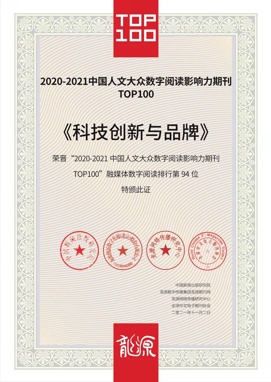 榮晉“2020-2021中國人文大眾數(shù)字閱讀影響力期刊Top100”