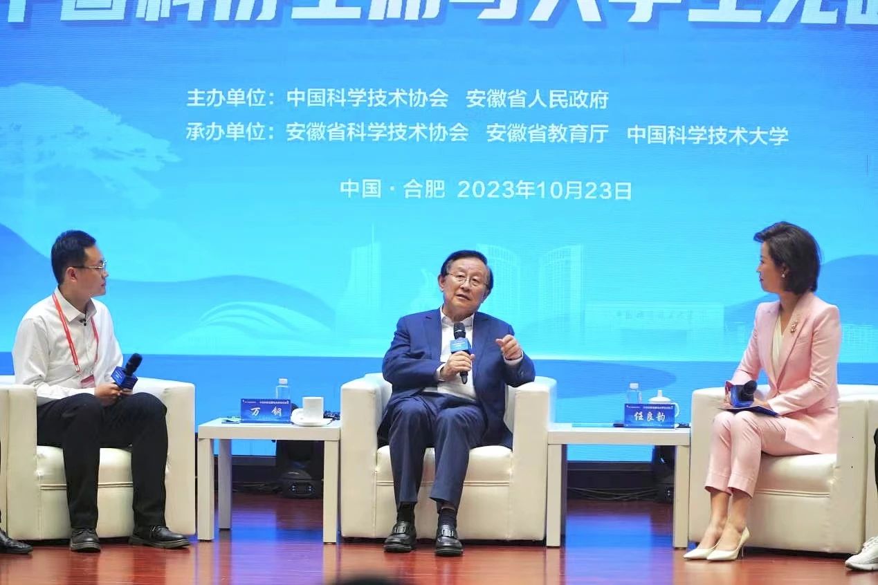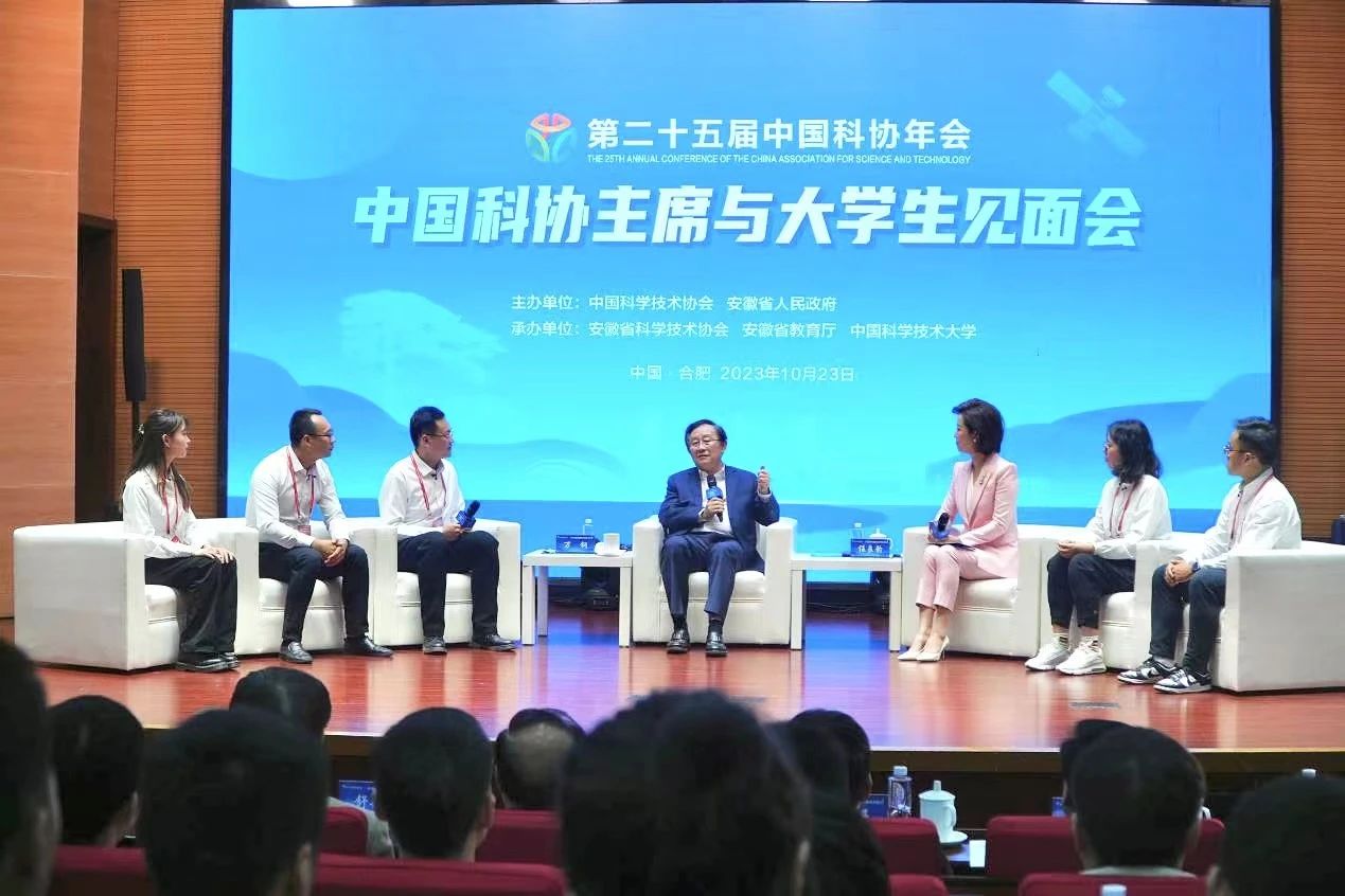 2023年10月23日下午,在中國科學(xué)技術(shù)大學(xué)水上報(bào)告廳,中國科協(xié)主席萬鋼與來自中國科學(xué)技術(shù)大學(xué)、合肥工業(yè)大學(xué)、安徽大學(xué)、安徽農(nóng)業(yè)大學(xué)、安徽醫(yī)科大學(xué)等10所在皖高校的220名優(yōu)秀學(xué)子代表面對面暢談,就中國科學(xué)家如何應(yīng)對當(dāng)前全球性挑戰(zhàn)、基礎(chǔ)科學(xué)專業(yè)學(xué)生如何在中國科技發(fā)展中貢獻(xiàn)力量、如何理解科學(xué)普及與科技創(chuàng)新的關(guān)系、如何應(yīng)對科研實(shí)驗(yàn)中的不可控因素等問題進(jìn)行了親切交流。