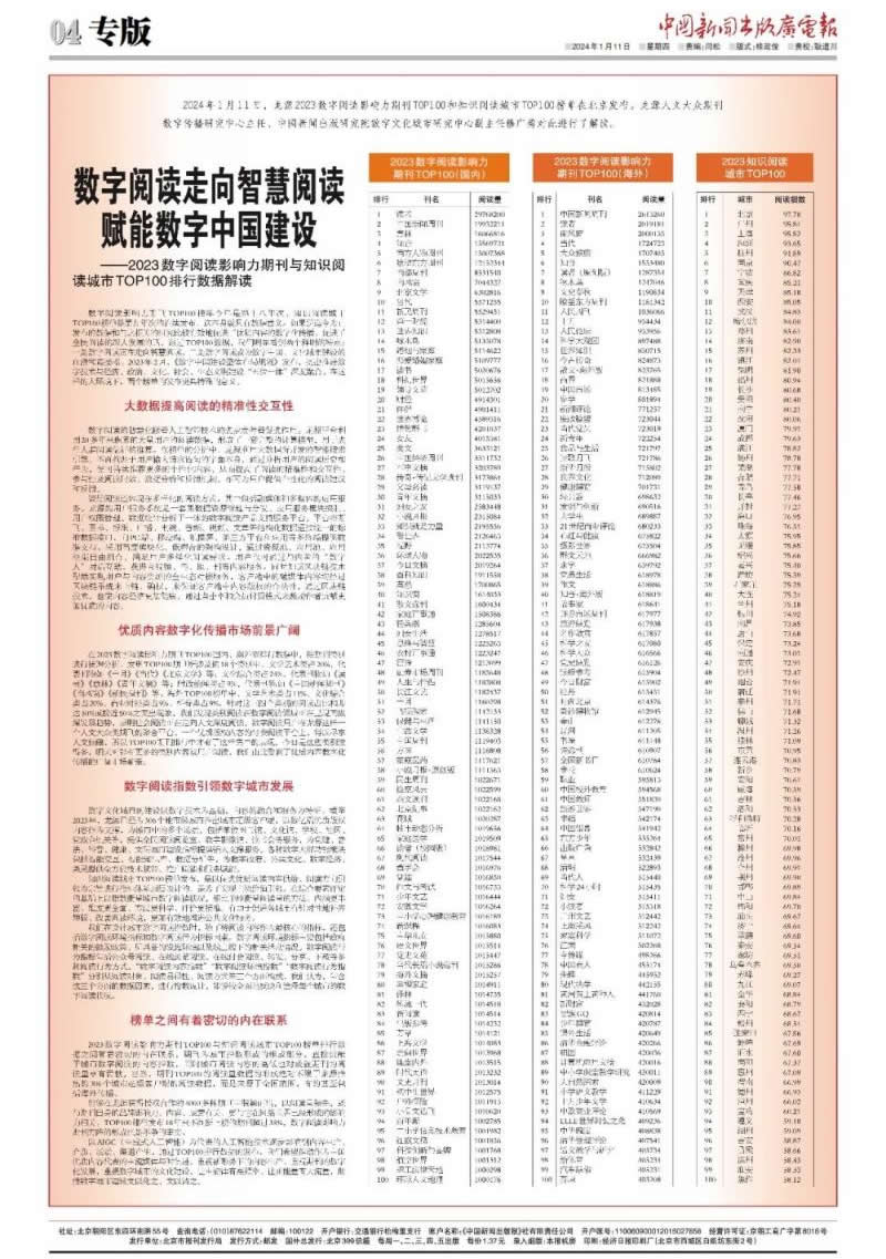 本刊連續(xù)6年榮列數(shù)字閱讀影響力期刊TOP100