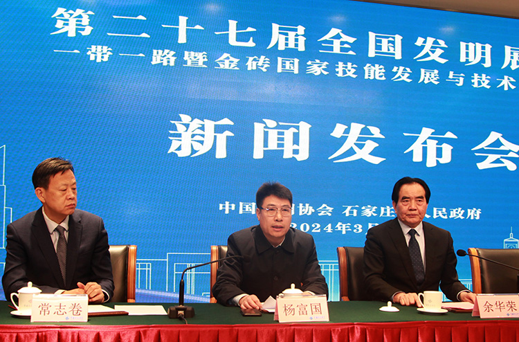 3月19日,中國發(fā)明協(xié)會和石家莊市人民政府在北京共同舉行新聞發(fā)布會,宣布第27屆全國發(fā)明展覽會﹒“一帶一路”暨金磚國家技能發(fā)展與技術創(chuàng)新大賽將于5月22-24日在石家莊國際會展中心舉辦。