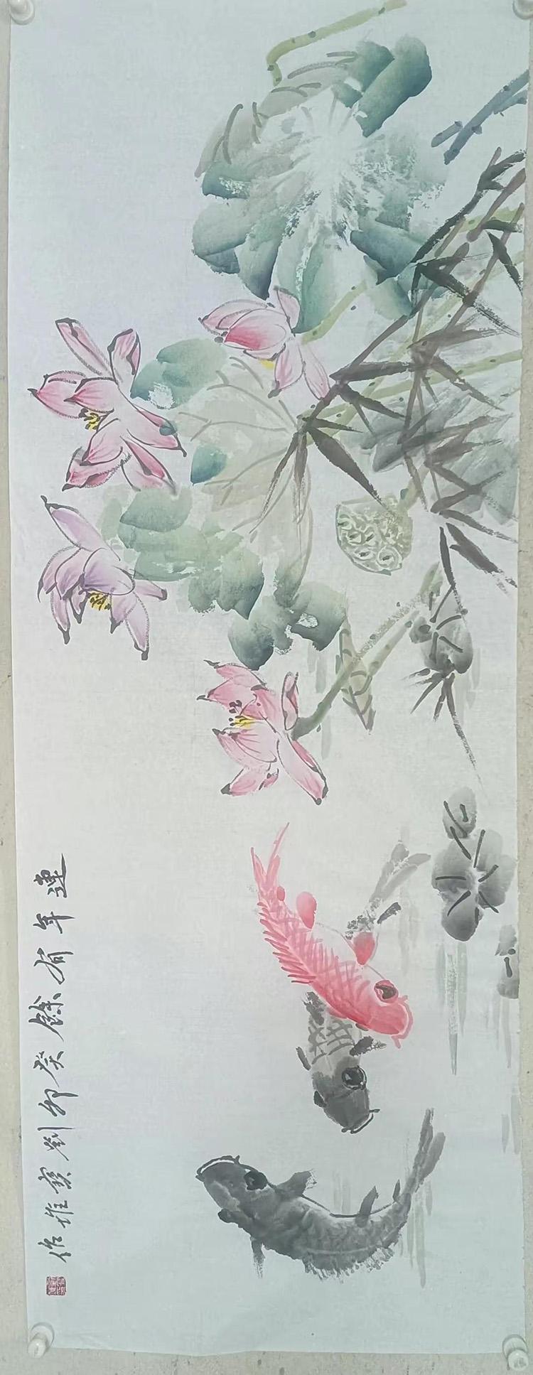 劉寶堆國畫荷花作品《萬紫千紅》55x90