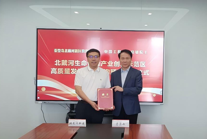 秦皇島市政協(xié)副主席,北戴河新區(qū)工委副書記、管委主任王占勝向詹啟敏院士頒發(fā)顧問聘書