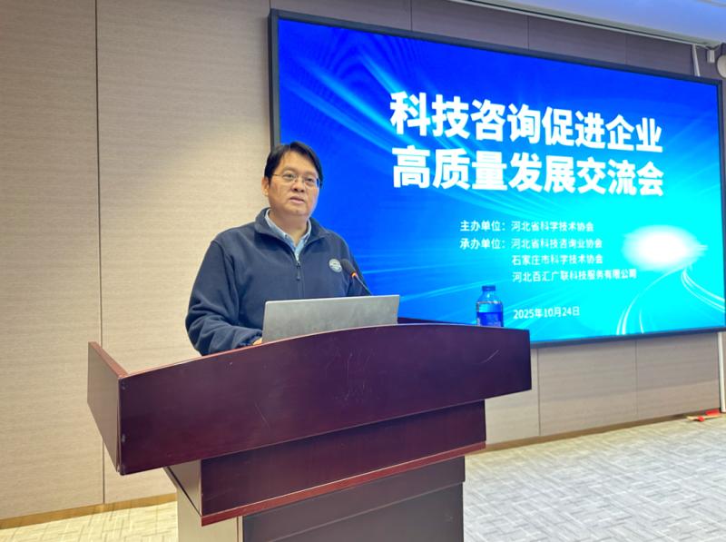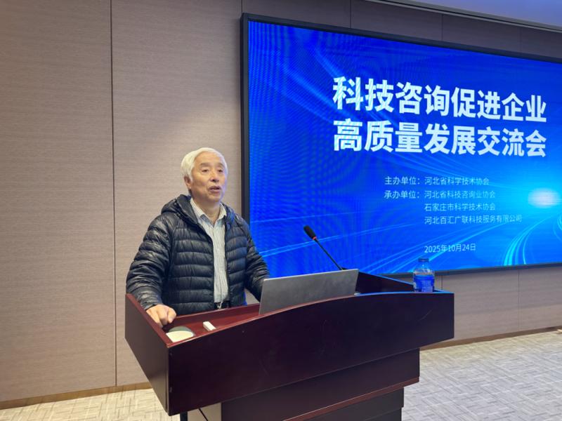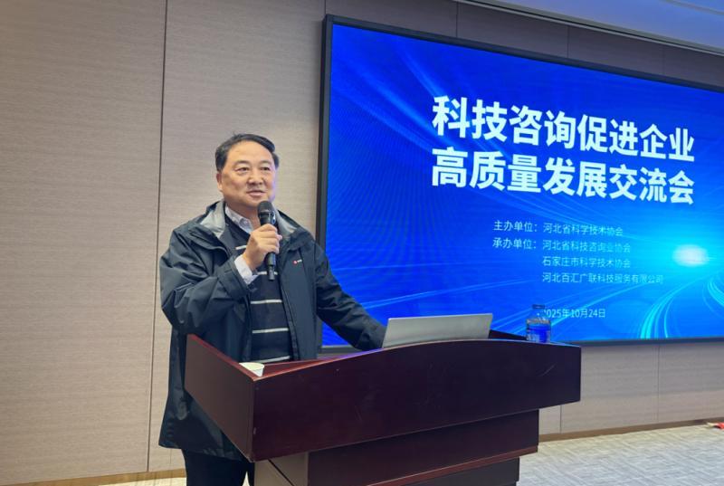 2025 年 10 月 24 日,由河北省科學(xué)技術(shù)協(xié)會(huì)主辦,河北省科技咨詢業(yè)協(xié)會(huì)、石家莊市科學(xué)技術(shù)協(xié)會(huì)、河北百匯廣聯(lián)科技服務(wù)有限公司聯(lián)合承辦的 “科技咨詢促進(jìn)企業(yè)高質(zhì)量發(fā)展交流會(huì)” 在石家莊市高新區(qū)舉辦 。來(lái)自全省科技咨詢業(yè)協(xié)會(huì)會(huì)員單位、科技型企業(yè)、科研院所的 80 余名代表齊聚一堂,圍繞科技咨詢助力企業(yè)創(chuàng)新轉(zhuǎn)型、推動(dòng)產(chǎn)學(xué)研用深度融合展開(kāi)深入探討。