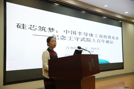 開幕展上,首都師范大學(xué)的尹曉冬教授作了題為《硅芯筑夢(mèng):中國(guó)半導(dǎo)體工業(yè)的奠基者——紀(jì)念王守武院士百年誕辰》的主題報(bào)告。王守武是我國(guó)著名的半導(dǎo)體器件物理學(xué)家。尹曉冬教授講述了王守武院士主持半導(dǎo)體研究機(jī)構(gòu)工作、開拓半導(dǎo)體激光領(lǐng)域、籌建我國(guó)第一個(gè)晶體管工廠、主持大規(guī)模集成電路生產(chǎn)等科研故事。通過詳細(xì)講述王守武的科研人生,讓觀眾進(jìn)一步領(lǐng)略到了老一輩科學(xué)家嚴(yán)謹(jǐn)求學(xué)的科學(xué)精神和科技報(bào)國(guó)的家國(guó)情懷。